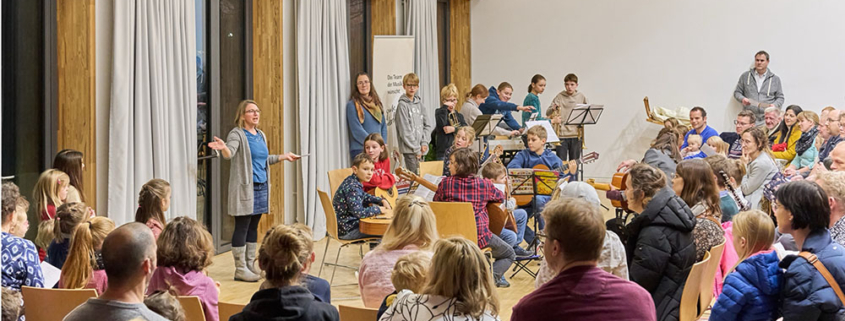 Kleine und große Schüler der Musikschule stimmen mit einem Konzert im Rahmen des Aßlinger Weihnachtsmarktes auf den Advent ein.